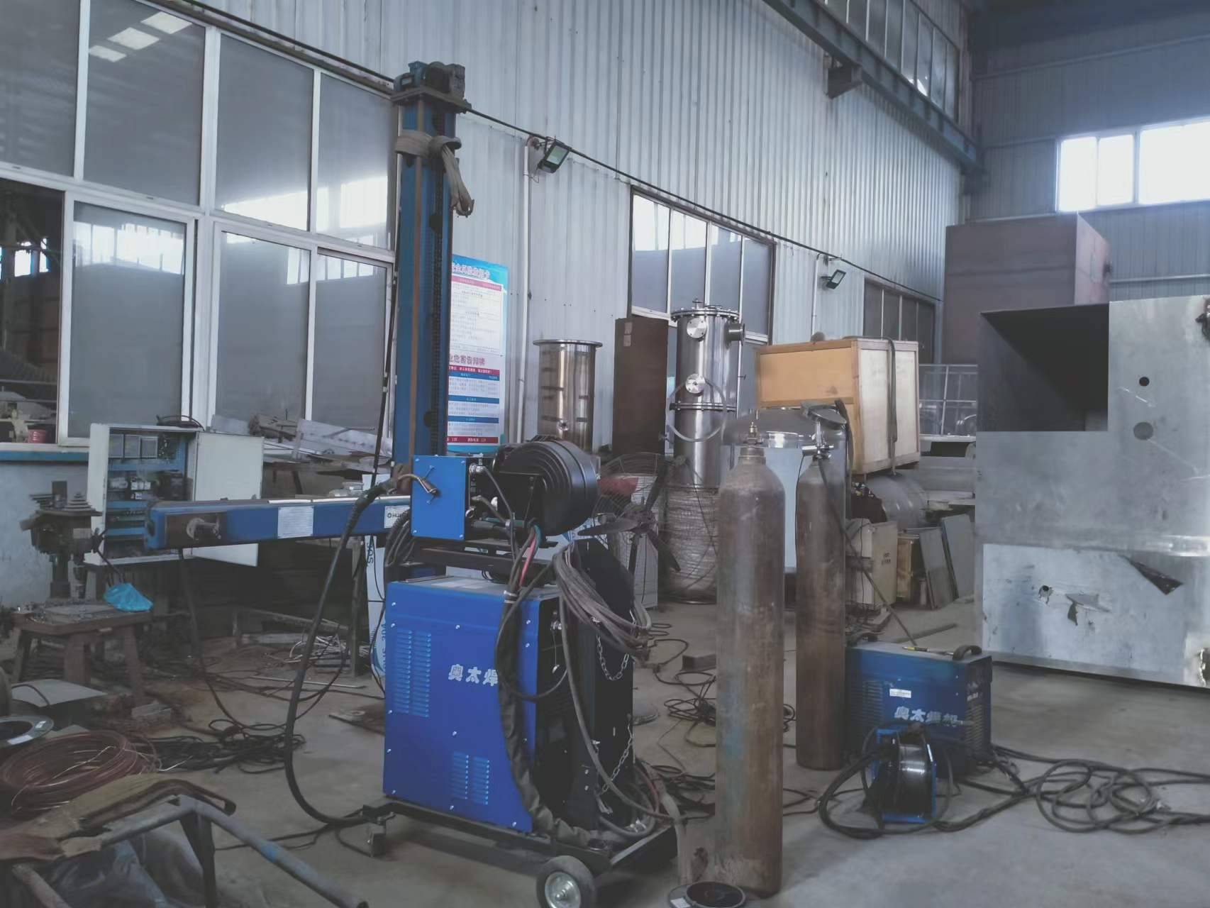 焊縫、縱縫自動(dòng)焊機(jī)、等離子切割機(jī)、卷板機(jī)、封頭拋光機(jī)、滾筒拋光機(jī)等多種現(xiàn)代化智能生產(chǎn)設(shè)備。