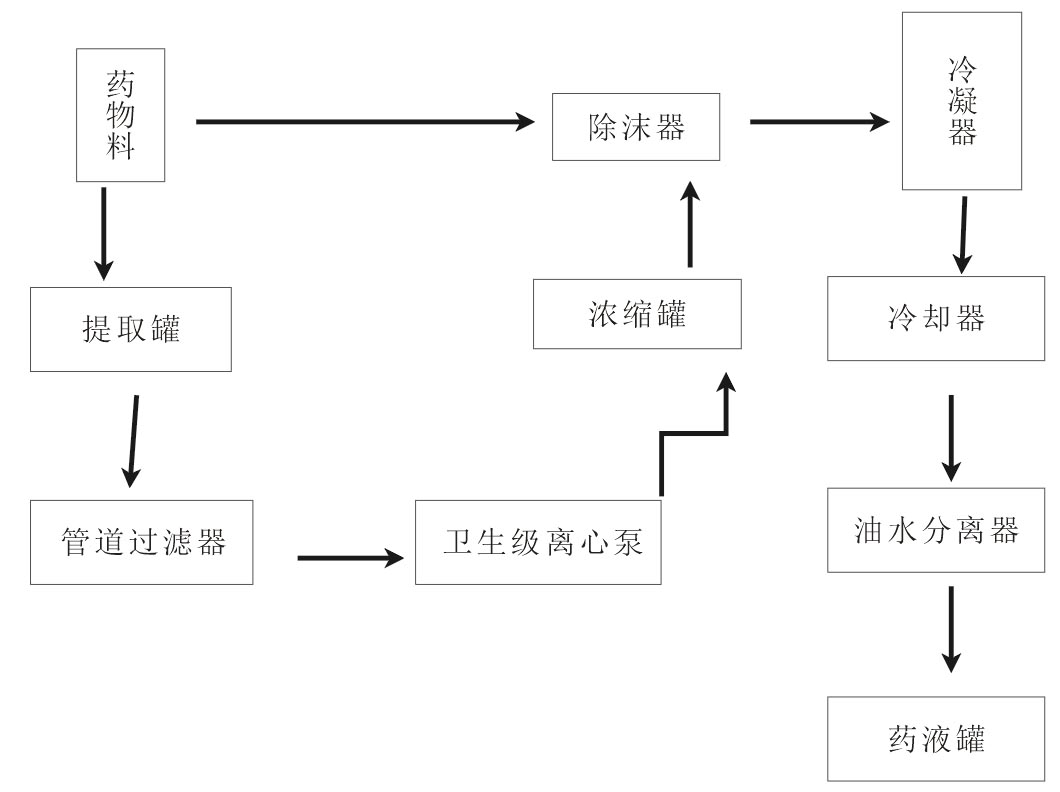 后至過濾器,進(jìn)入濃縮器。濃縮時產(chǎn)生蒸汽進(jìn)入冷凝器,成為冷凝液,作為新溶劑噴淋至提取罐同;提取罐內(nèi)產(chǎn)生的二次蒸汽,經(jīng)冷凝器冷