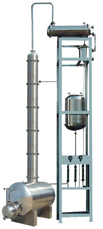 本裝置采用高效不銹鋼波紋填料,接觸酒精部位,如塔體、冷凝器、穩(wěn)壓罐、冷卻蛇等均采用優(yōu)質不銹鋼制作,成品酒精不被污染,塔釜采